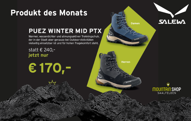 Im MOUNTAIN SHOP SAALFELDEN findest du nicht nur TOP Ausrüstung von Salewa, sondern auch viele andere Marken für Bergsport und Alpinsport. Unser erstklassiges Sortiment umfasst ein breites Spektrum von Salewa, über Dynafit, Wild Country, Evolv, Petzl und vielen mehr. Vertraue unseren Marken und Bekleidung beim Wandern, Klettern, Bergsteigen, Skifahren & Skitouren
